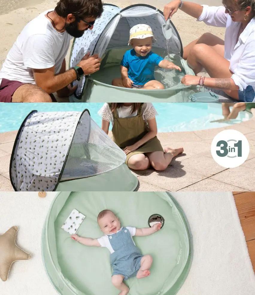 Give your little one the perfect outdoor retreat with the Babymoov Aquani Baby Beach Tent, a 3-in-1 solution designed for sun protection, play, and relaxation. Suitable for newborns up to 6 months, this multifunctional tent transforms effortlessly from a UV-protective shelter into a refreshing paddling pool or an indoor ball pit (balls not included).
