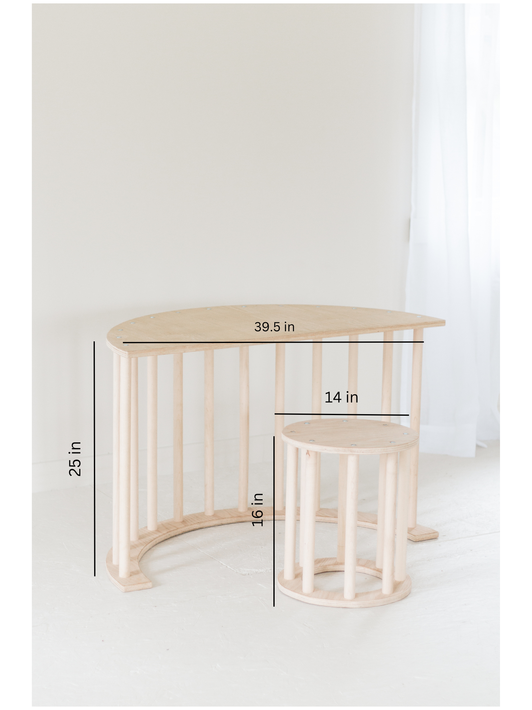 Table Surface: Features a cloud-like edge and pencil groove for drawing or table play