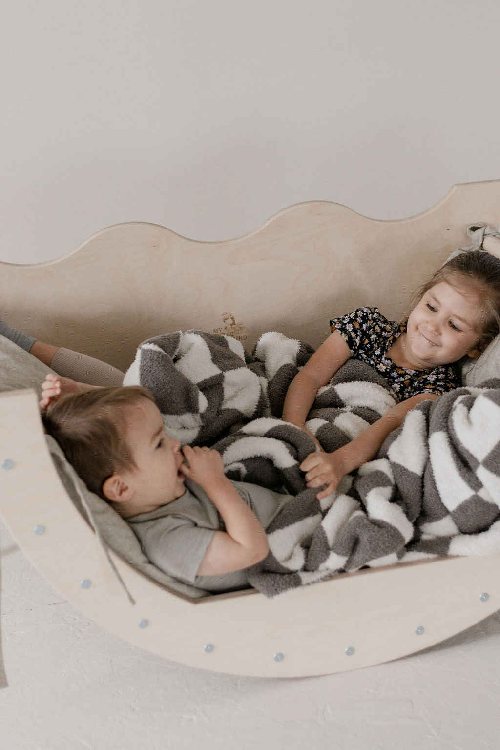 Inspired by the Montessori and Pikler philosophies, this versatile piece invites your little one to climb, build, rock, slide, and imagine—all while building confidence and essential physical skills.