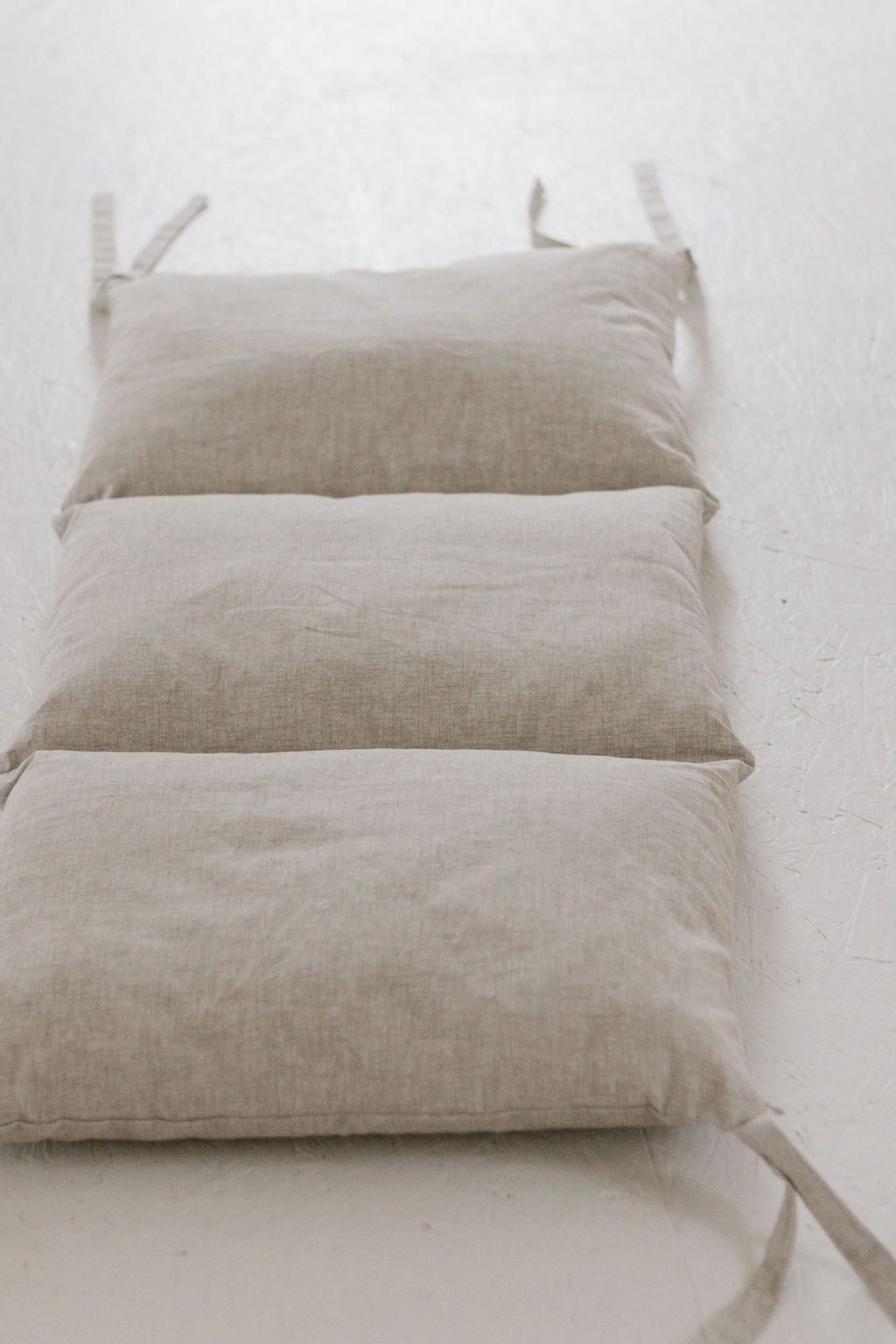 Our cushion is made here in the states by a wonderful Seamstress. Its made with quality, easy to wipe fabric, and the inserts can be removed, making it easy to wash the cover !