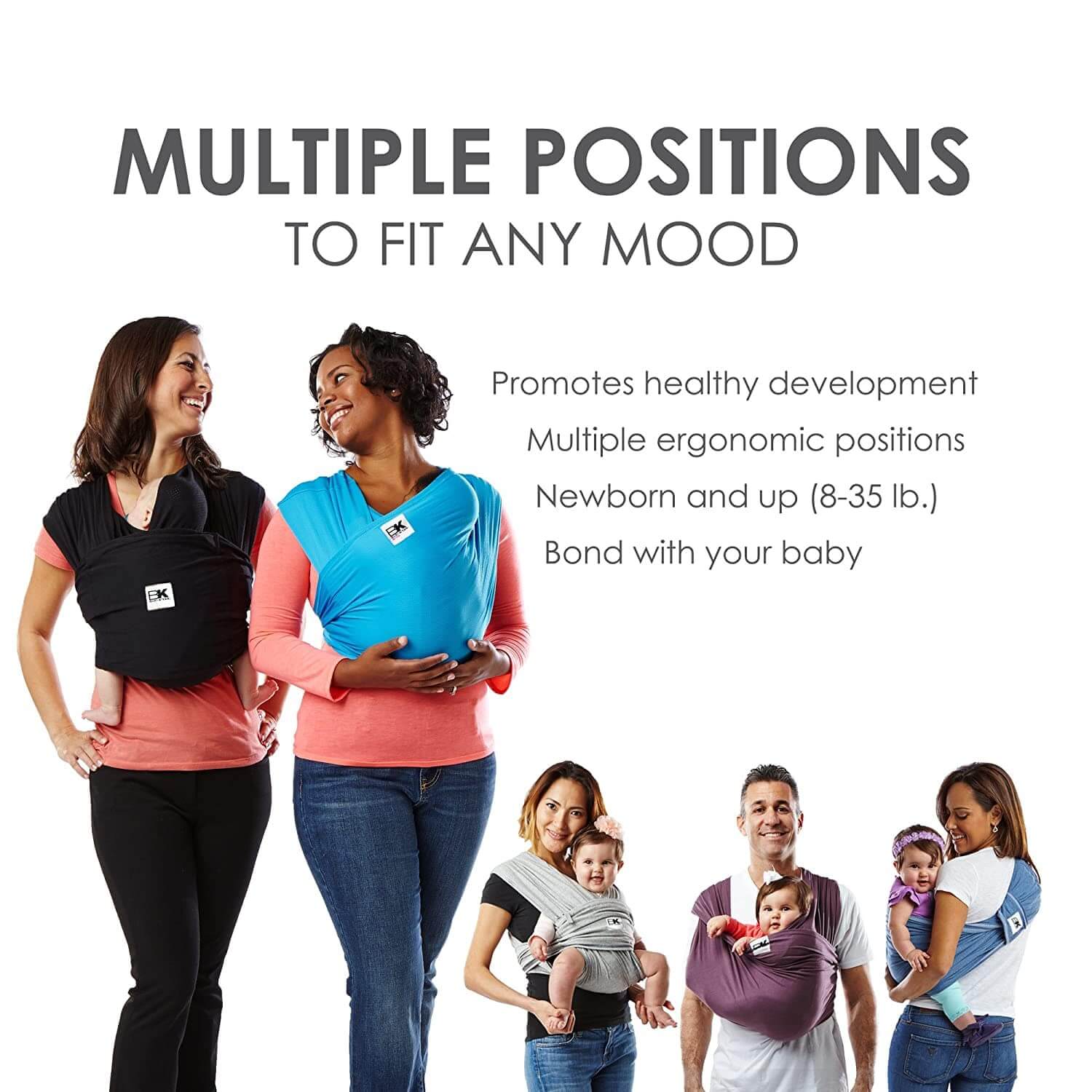Ideal for newborns and infants starting at birth up to 35lbs, the Baby K’tan Baby Carriers patented double-loop design and unique one-way stretch delivers the security you want and the versatility you need to be on the go, hands-free and snuggle your little one close. Moms can even nurse discreetly and bond through skin-to-skin care modestly with our cotton baby wrap. No buckling or excess fabric wrapping to confuse or frustrate the user. Quickly switch between 5 different carrying positions without removing this organic baby carrier. All Baby K'tan Baby Carriers come in a matching carry bag that converts to a sash which provides added support for certain positions in your Baby K’tan Baby Carrier. Organic baby sling is machine washable, dryer safe.