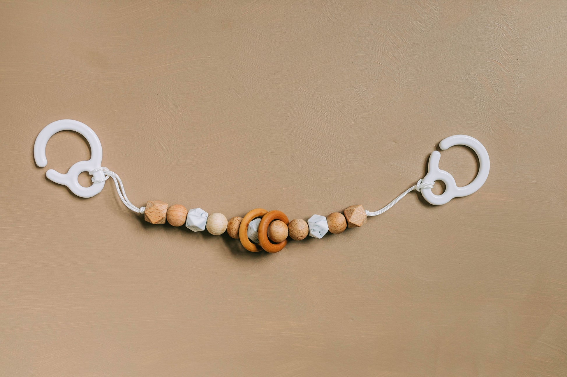 Car Seat Toys that clip easily clip anywhere! Clip to highchairs, prams, stroller bars, and more. Made from high quality Maple wood beads, and BPA-Free / Chemical Free Food Grade Silicone Beads. Comes with 2 Maple wood rings.