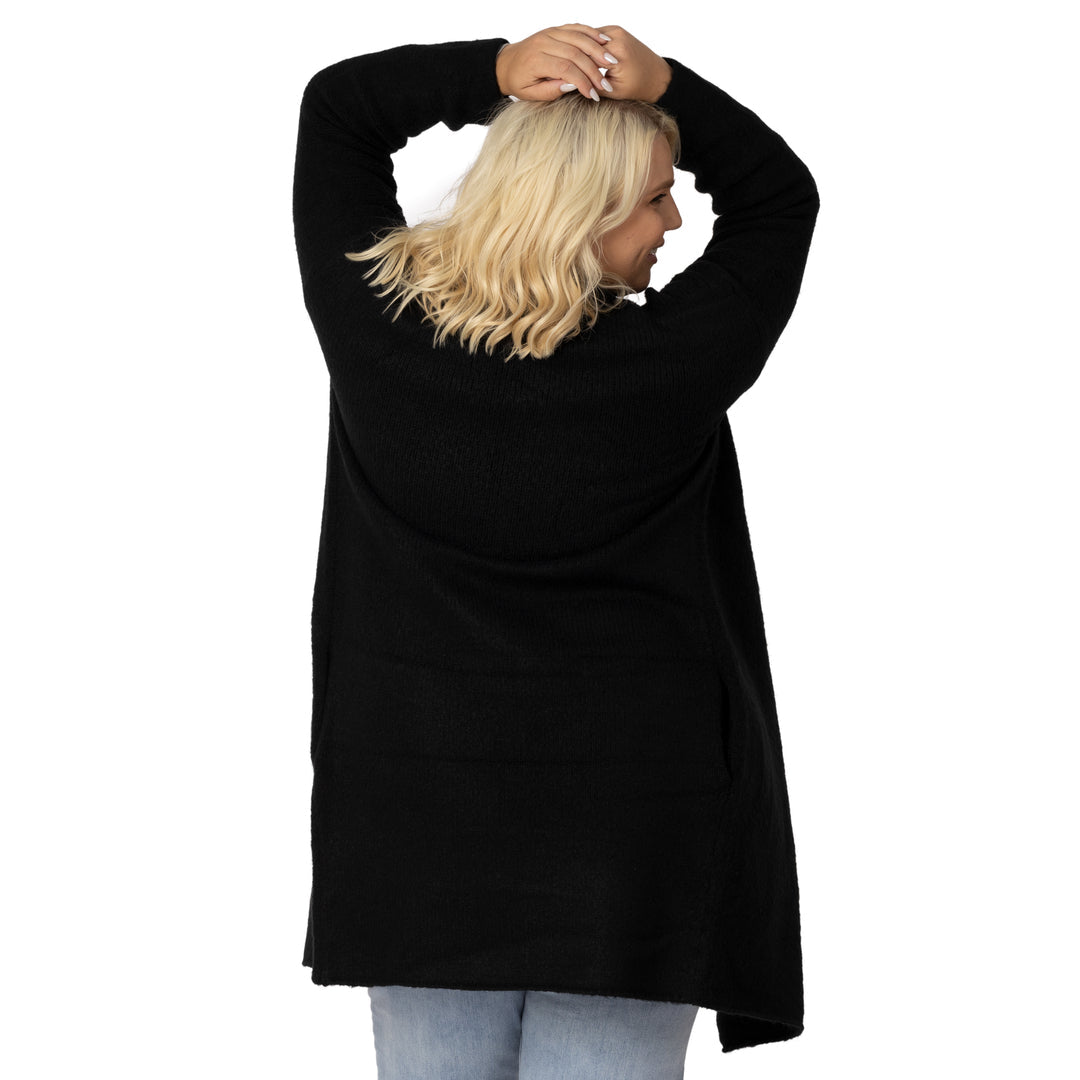 Like wearing a hug. The perfect cozy sweater to complete your outfit, this high-quality, super-versatile knit cardigan is made from a soft, thick, fluffy yarn. It’s great for cuddling your little one on the couch, running errands, or going on a date night.