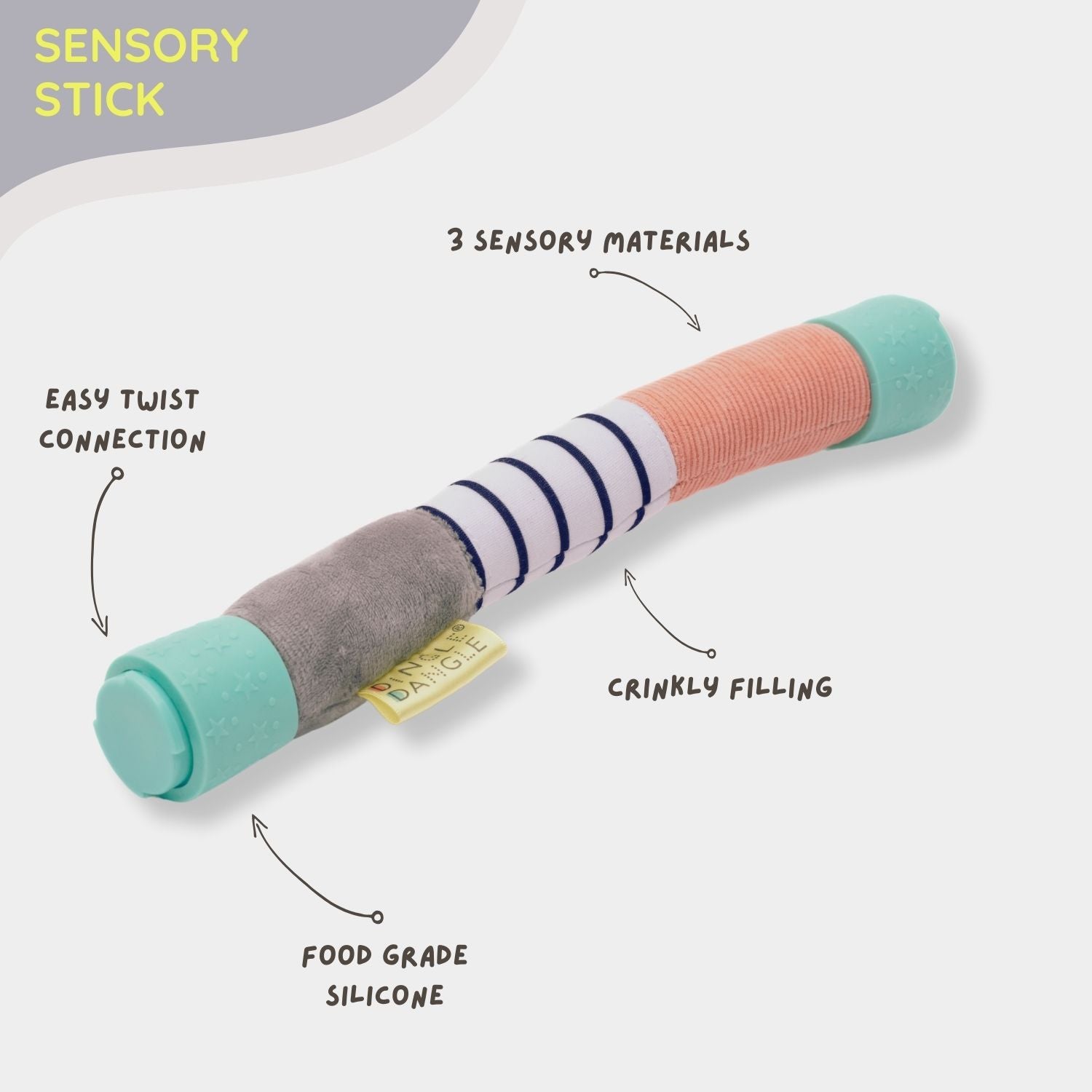Sensory Rod: This isn’t just any rod—this is the MVP of distraction. With three different textured fabrics and high-contrast black and white colors, it’s designed to captivate your baby’s attention. Bonus: when it’s not in action, the rod is ergonomically designed to fit perfectly into your baby’s hand, encouraging those fine motor skills.