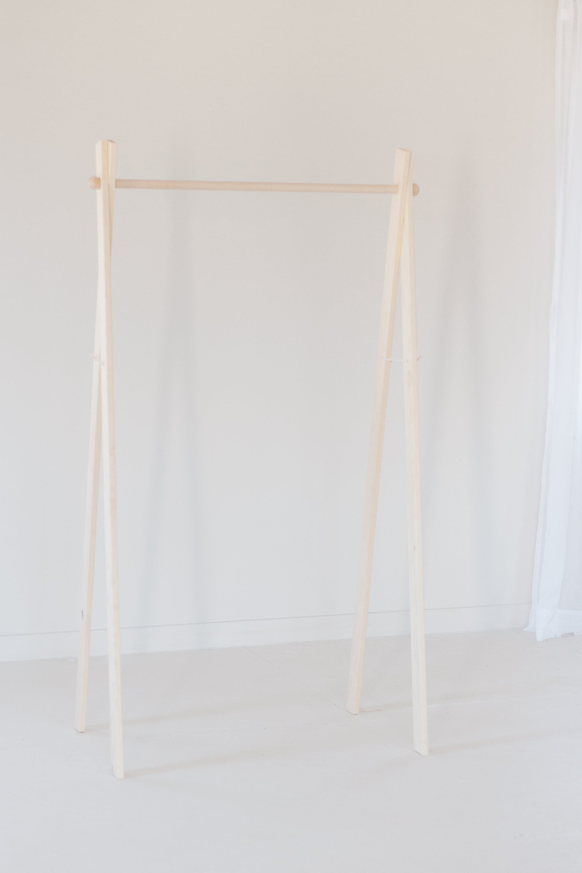 Our Large clothing rack is made from strong Maple wood, and has a thick dowel rod which will hold up to 10 dresses easily. This works perfect for a minimalist home, to hang your clothing on.