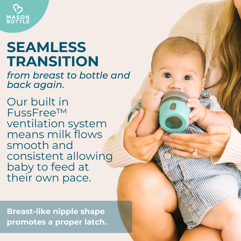 Tired of the expense and clutter that comes with buying a full baby bottle system? Look no further than the Mason Bottle DIY Kit! This kit includes everything you need to effortlessly transform your own regular mouth mason jars and metal rings into non-toxic, cost-effective, and easy-to-clean glass baby bottles. Designed for easy cleaning, breastfeeding support, and toxin-free peace of mind.