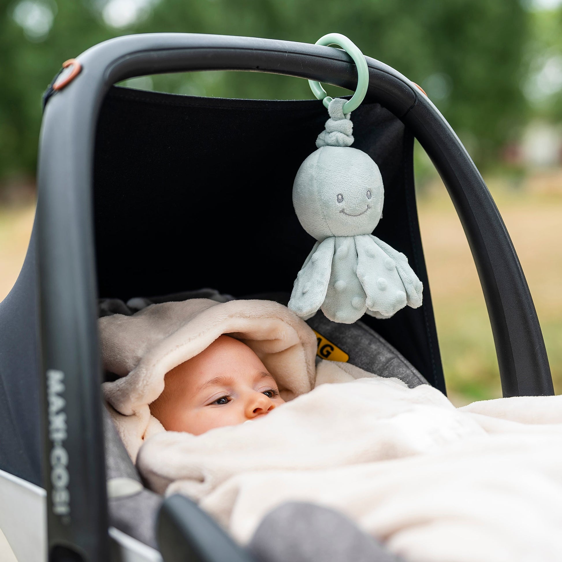 The cute octopus cuddly with its pretty fur conquers the hearts of newborns worldwide. The adorable octopus offers countless grasping possibilities and thus promotes the development of motor skills. In addition, there is an integrated vibration function that playfully refines the child's sense of touch and auditory skills and provides plenty of entertainment.