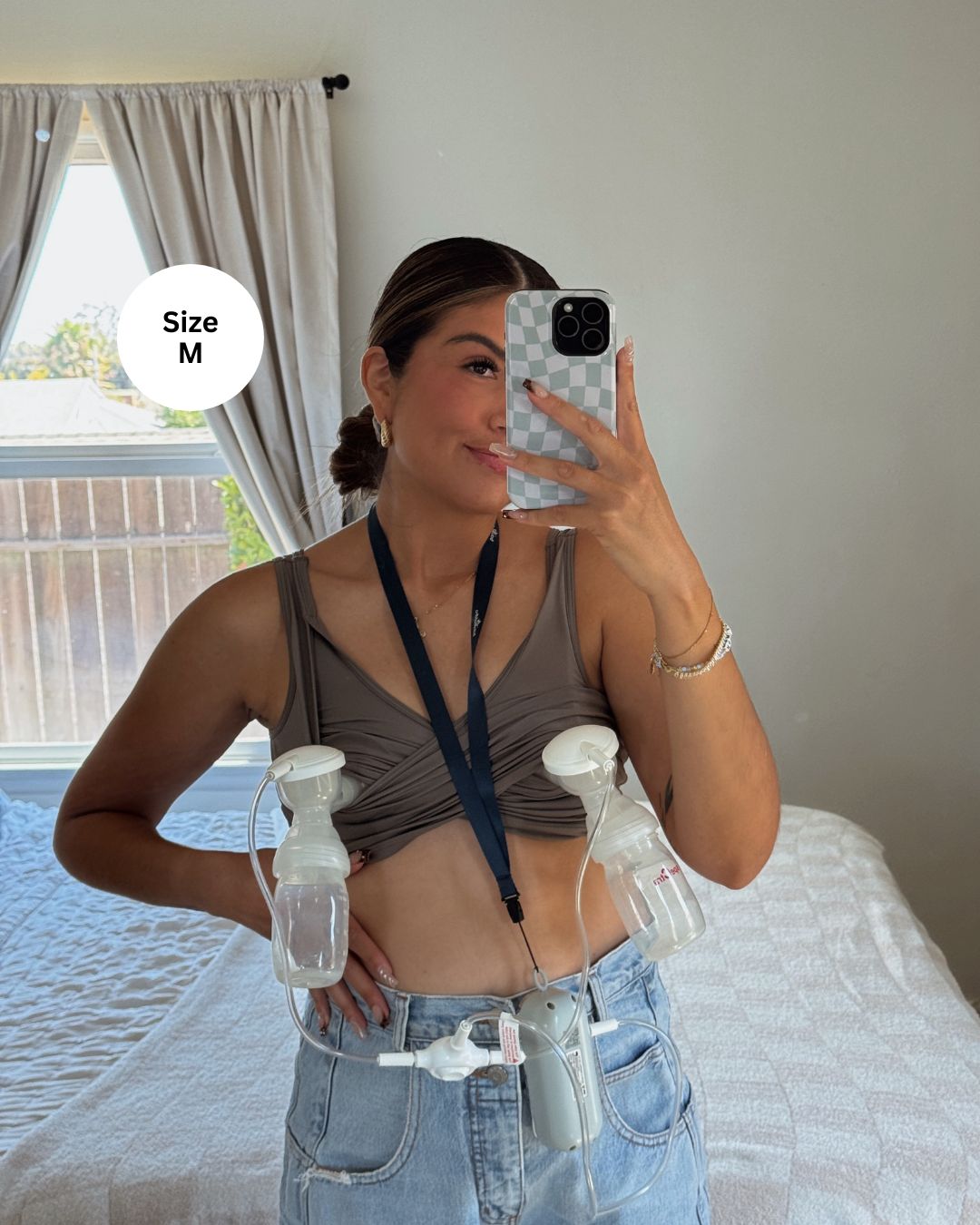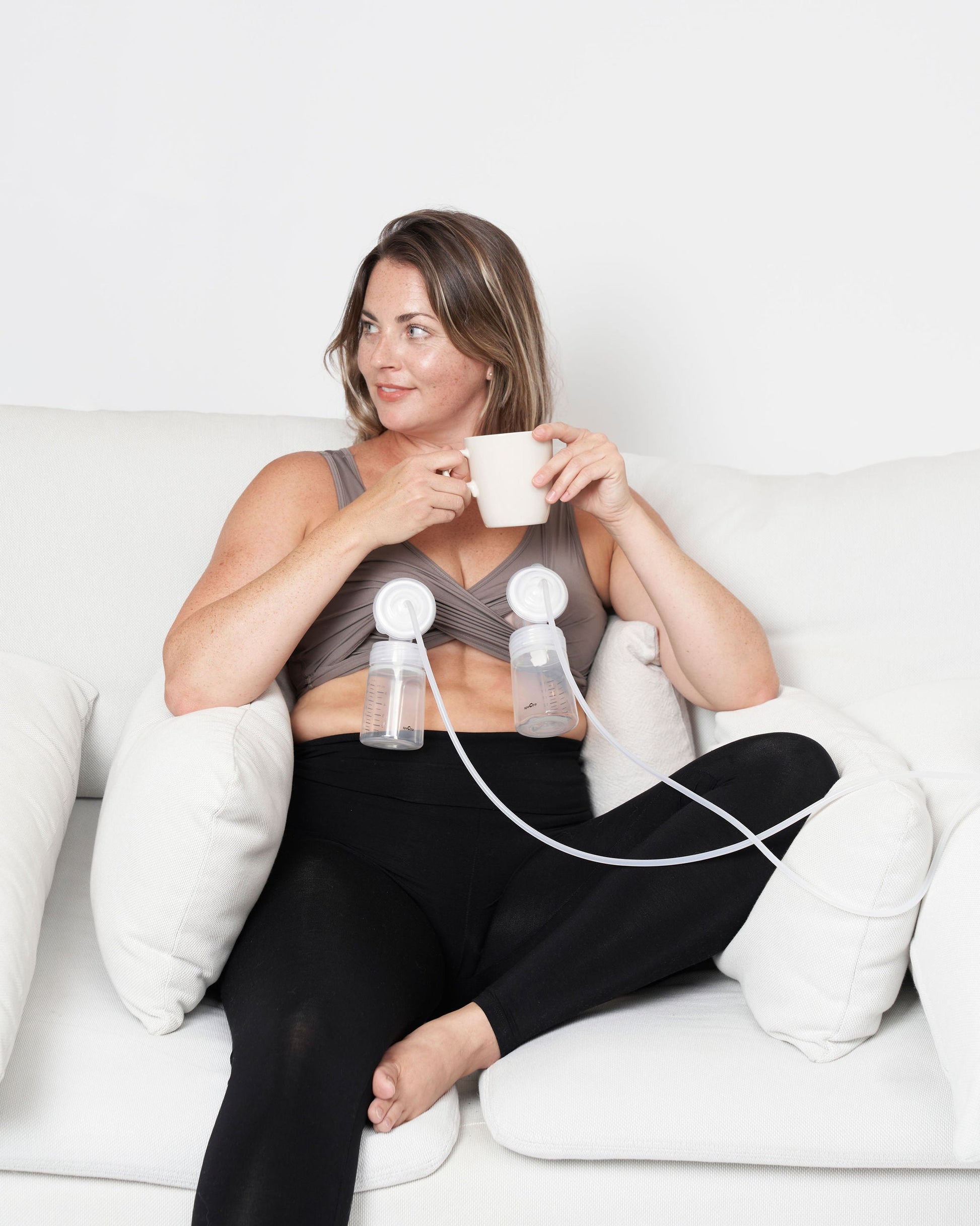 Our patented, maximum comfort nursing + hands-free pumping bra.