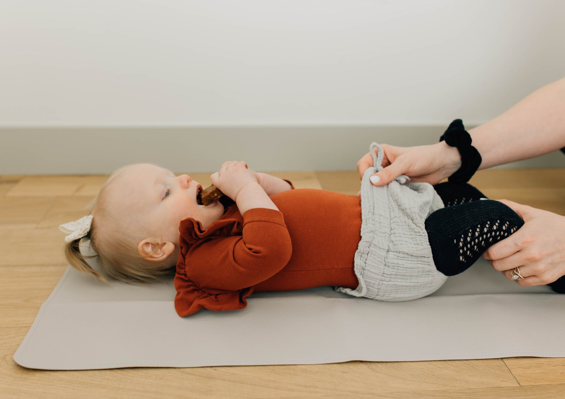 We offer a super-soft textured, matte, luxe vegan leather changing mat that is high quality, durable and scratch-resistant. Our vegan leather is 100% baby safe and free of toxins, PVC, phthalates and lead.